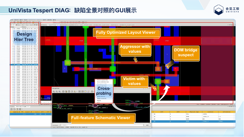 UniVista Tespert DIAG是一款創(chuàng)新高效的缺陷診斷軟件工具,其圖形化界面提供了缺陷全景對照,幫助工程師快速定位和解決系統(tǒng)性缺陷,大幅提升芯片測試效率,加速產(chǎn)品上市時間。