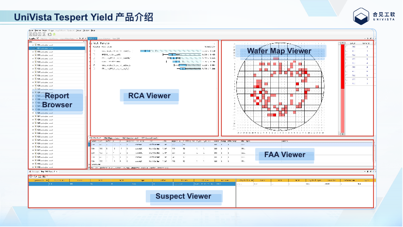 隨著半導(dǎo)體制造工藝的不斷演進(jìn),良率提升已成為企業(yè)保持競爭力的關(guān)鍵。本次新品發(fā)布會暨研討會上,劉培彥向與會觀眾介紹了公司今年3月推出的全新產(chǎn)品UniVista Tespert YIELD。這是一款以圖形用戶界面(GUI)為核心的良率分析和提升工具,其通過創(chuàng)新的圖形化操作界面和高度自動化的分析流程,為工程師提供從缺陷診斷到根因分析的全流程解決方案,真正實(shí)現(xiàn)“開箱即用”。